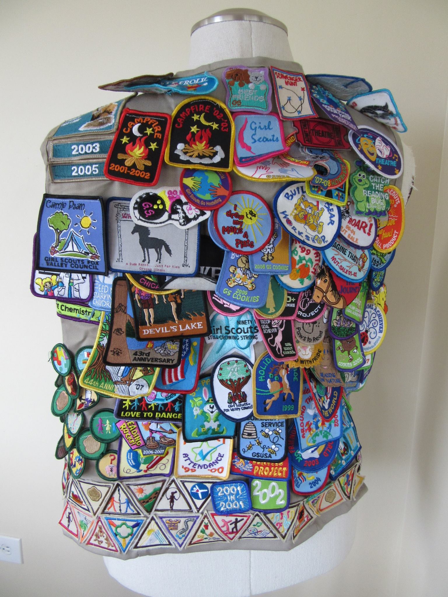 The back of my Cadette/Senior Girl Scout vest. Thanks mom for sharing this photo.