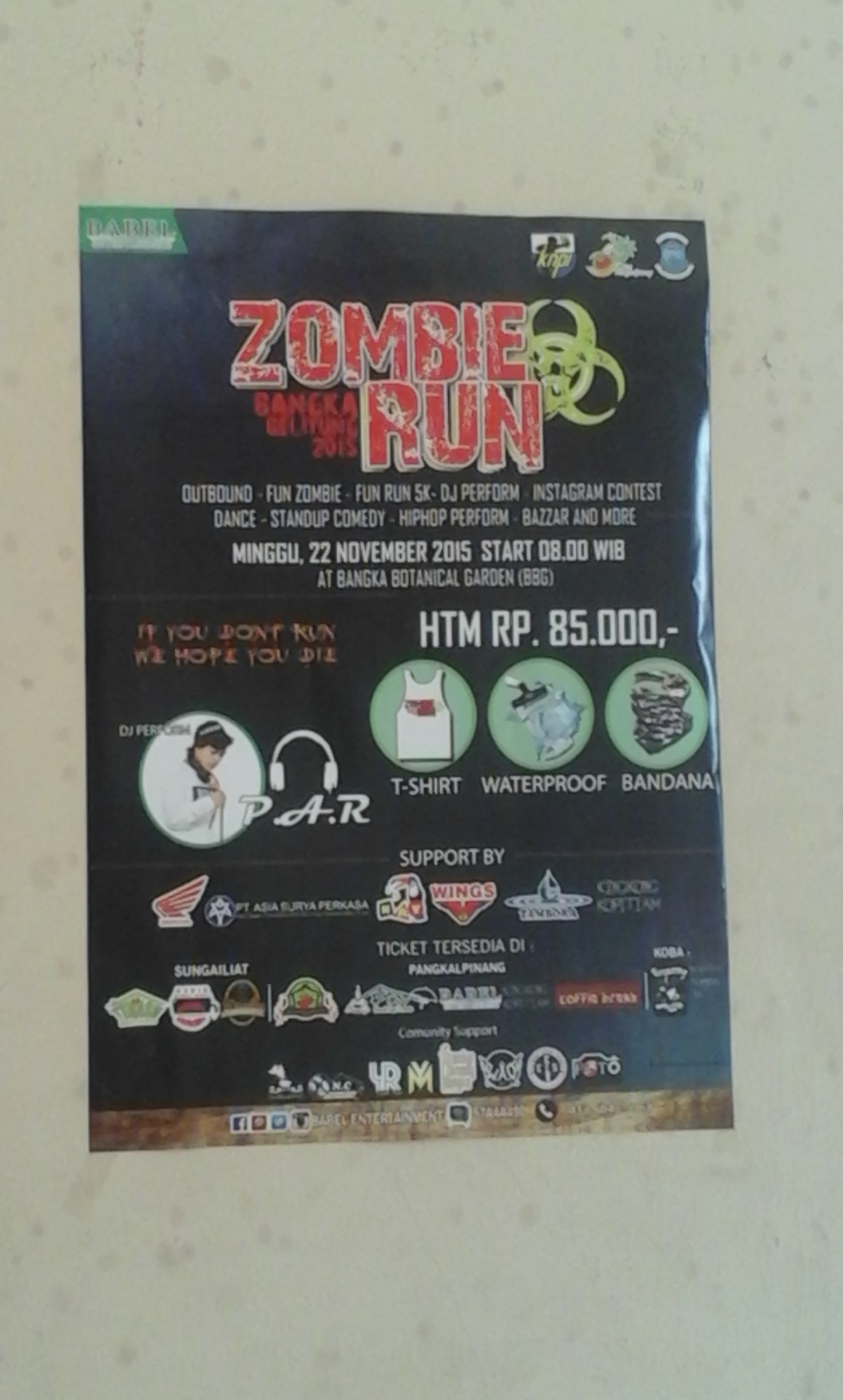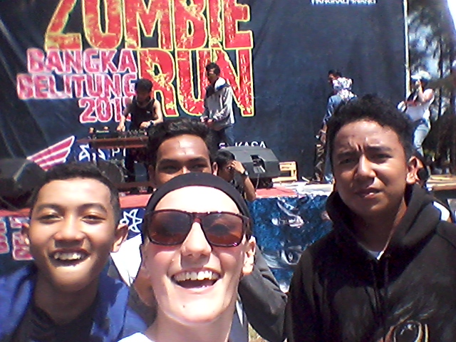Indonesia reached a new level of awesome today thanks to Babel Entertainment (Babel = Bangka-Belitung, my province) and the epic Zombie Run that they held at BBG (Bangka Botanical Gardens) this morning. This event combined some of my favorite things: loud music, getting dirty, beautiful nature, communal exercise, lot of laughter, and — of course — zombies. I had seen posters for this event on the wall in my favorite kopitiam [coffeehouse] and bought tickets for it earlier this week. I’ll let the pictures do the talking.