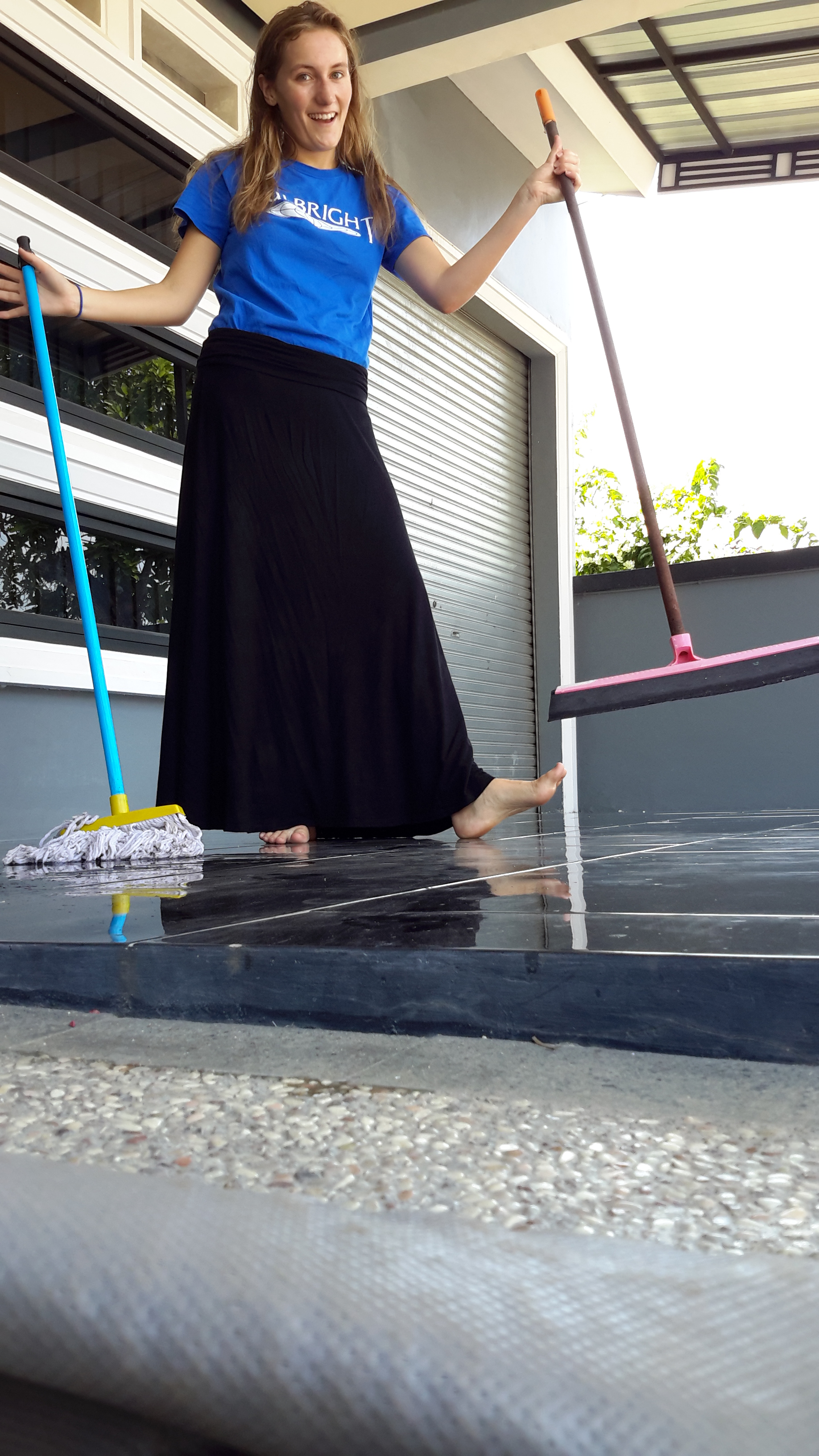 Cleaning the front porch before English club at our house one Thursday afternoon. Interesting fact: there is no word for “squeegee” in Indonesian despite the fact that nearly every household has one.