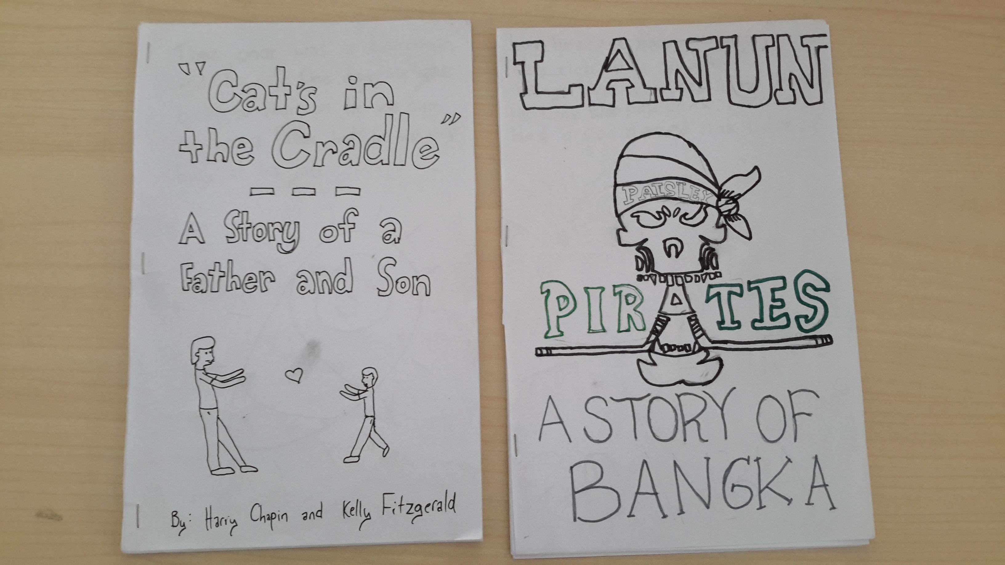 In my additional classes (3 additional hours of English with Classes X MIPA1 and 2) the topic is Narrative Text, which we have had fun with by analyzing the song “Cat’s in the Cradle” and then making our own short stories. In groups of 4 my students have created their own stories, start to finish, complete with drawings. They have had time to practice acting out the stories too (probably one of the funniest and funnest classes we have had so far) and I can’t wait for the testing to be over so we can share the stories and skits with the class.