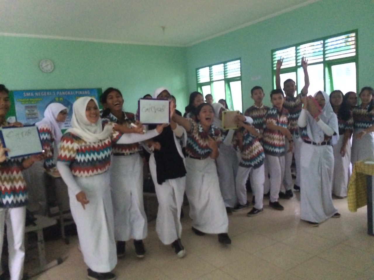 The Bu, who is one of the most Ibu-like (lit mother-like) Ibus I have met here, kept goading them to talk to me and laughing at their jokes in response. I had Google Translate at the ready to help me keep up. Good thing too, because otherwise I wouldn’t have known that one of the students from Class XI IPS3 was saying that he wanted to culik [kidnap] me and take me to Kantor Agama [Religious Affairs Office] so we could tie the knot. Once I figured this out I took a cue from the Bu gave him a smack with my notebook for his cheek. The students asked me about everything from if I was able to sing heavy metal songs (I tried, much to their delight) and were mind-boggled that I have lived in Bangka for six months and have yet to try empek (a fishy doughball).