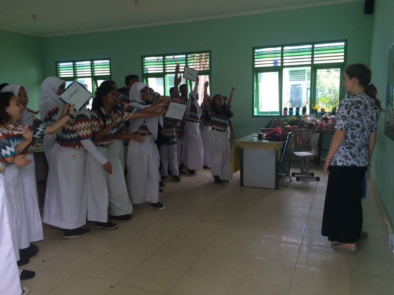 Last weekend was the workshop and this weekend is the other major event during this grant year: SMAN3’s WORDS Competition! The WORDS Competition was started a few years ago by an ETA and has become a part of the Fulbright ETA program. Each year, ETAs host a competition for students at their schools. Winners of these local competitions get whatever prizes the ETA decides to give (I am giving certificates to everyone; taking participants out to lunch afterward; presenting them all with an oleh-oleh bundle with candy, a penny, and a flashdrive from my alma mater; and I might get the top 3 nice dictionaries). The winner will then come with me to Jakarta to participate in the national competition with all of the other ETAs and their students. It will be a good time this Saturday and afterward, guaranteed. I have spent last week and this week visiting classes, getting students pumped, and having interested students over to my house in the afternoon to talk about their ideas and practice their speeches. It has been a bit of work for me and for the students, but I’m pumped for Saturday.