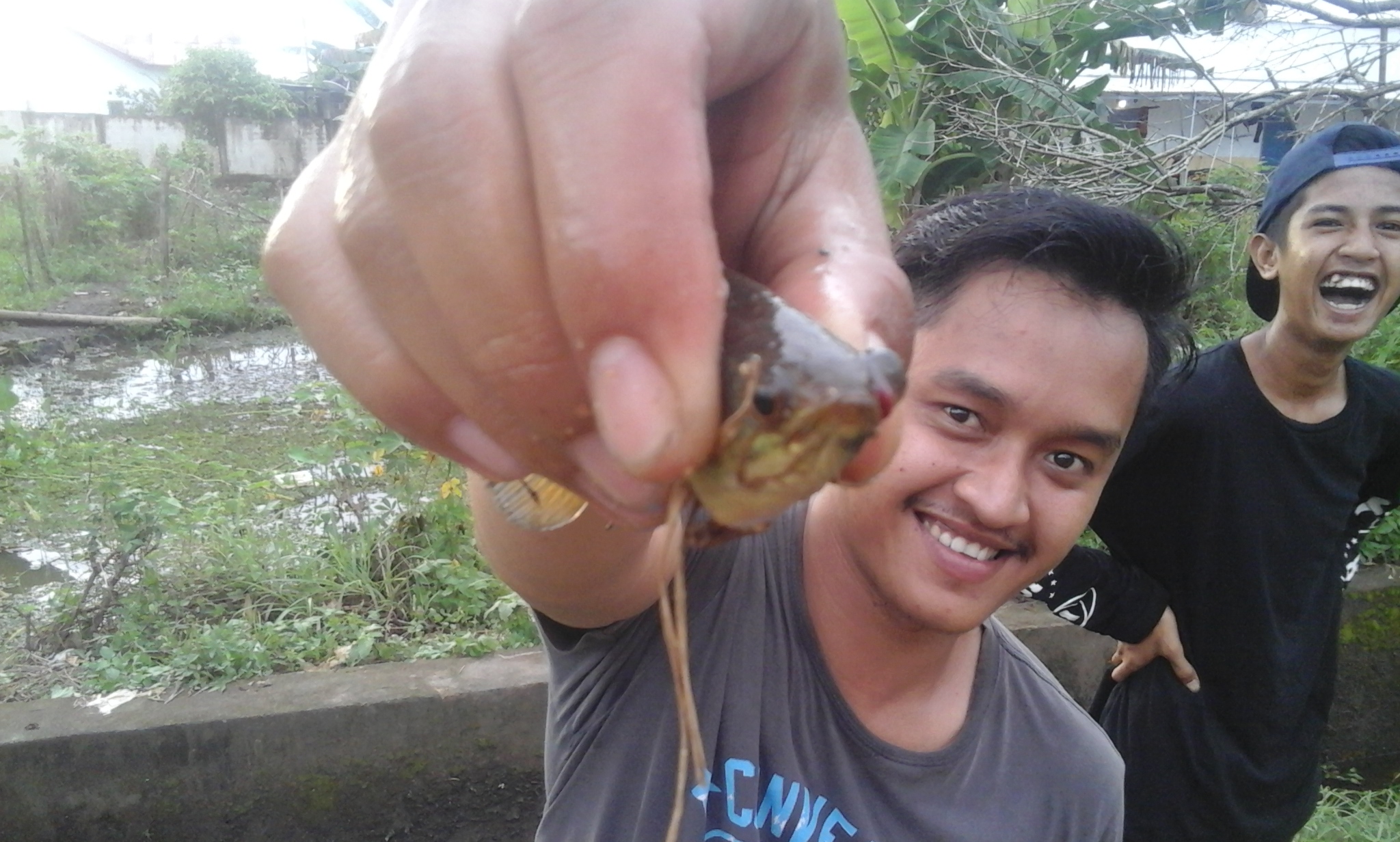 I didn't catch anything during my brief attempt at fishing, but Dian did. His cousin Andre is the one laughing in the background.