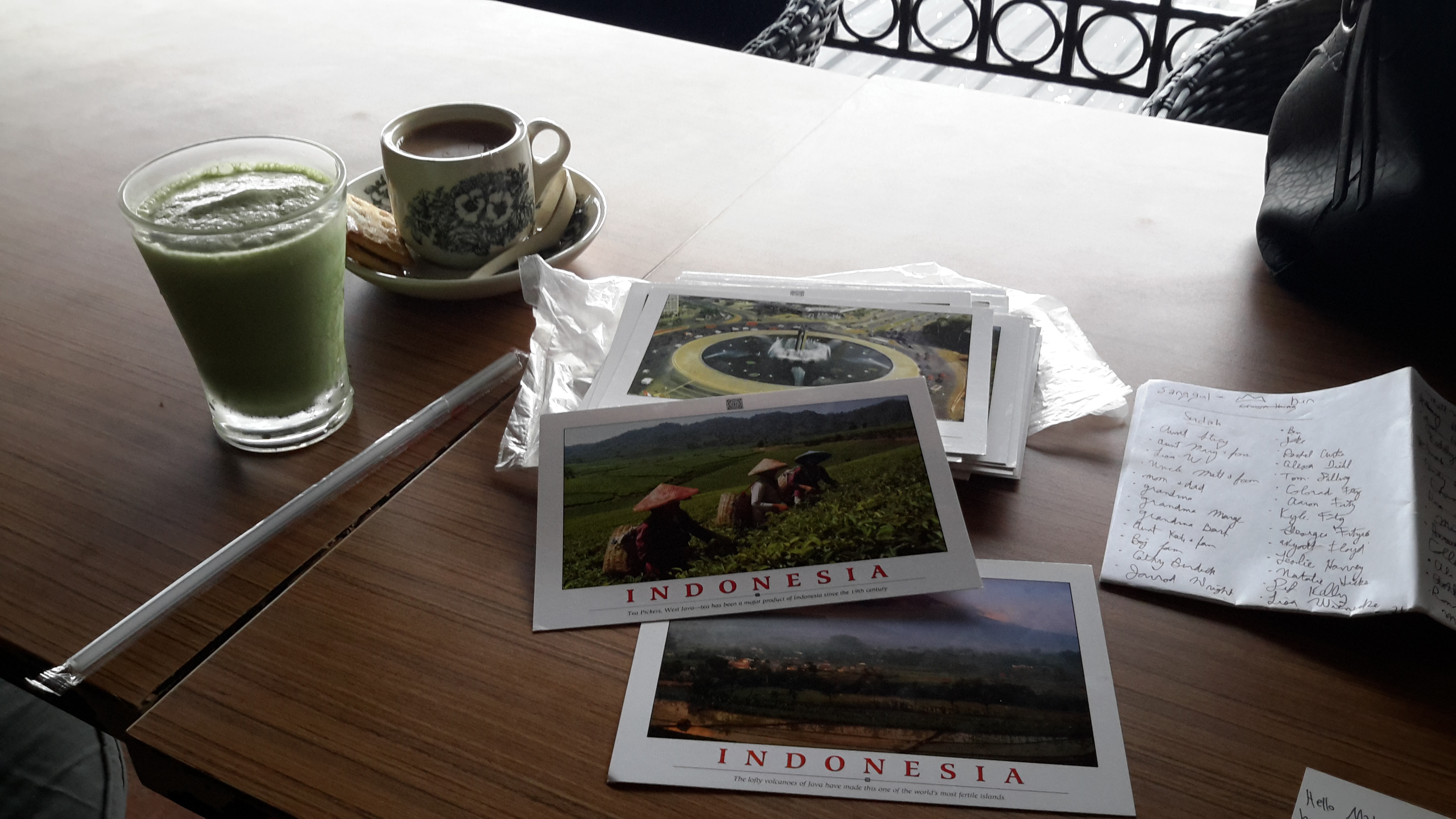 If you are reading this post, chances are you have or will shortly receive a postcard from me. This has been a big project I’ve been working on slowly but steadily over the past month, and it won’t be finished until a send off a final batch of freshly bought postcards from Jakarta. But while I’ve been home, I’ve written all the postcards holed up in different cafes with multiple caffeinated beverages on hand.