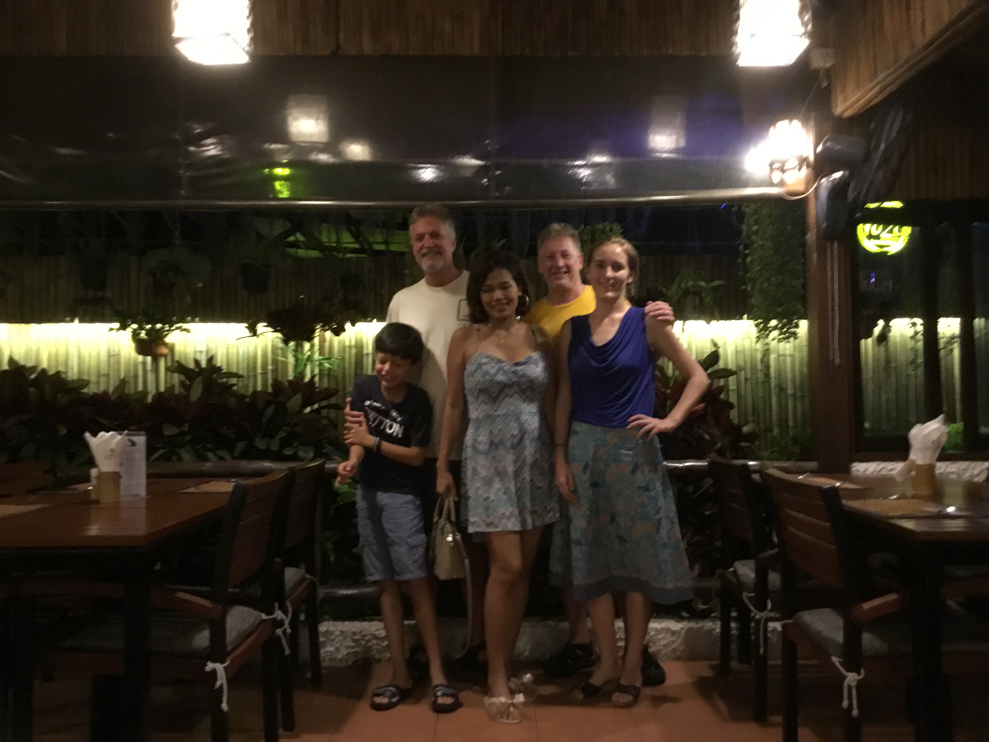 • Airport pick-up with Clayton, a.k.a. CJ, one of dad’s friends from high school. Clayton has been in and out of Thailand since the ’90s and currently lives in Phuket with his Thai wife P’Nong and their son, Tyler. Clayton picked us up and took us to breakfast on the beach. From the bustling city of Bangkok to the quiet waves of Naiyang Beach… not a bad change! We picked up Clayton’s wife, P’Nong, and went back to the house.