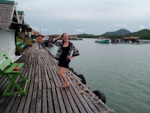 • Lunch at a floating restaurant. After settling into Clayton and P’Nong’s lovely and spacious home, we went out to lunch at a floating restaurant accessible only by long-tail boat. The restaurant (unsurprisingly) specializes in seafood. The menu is three-dimensional. You can walk out into the fish pens and select your meal right from the water–shark, crab, any kind of fish–you want it, they’ve got it!