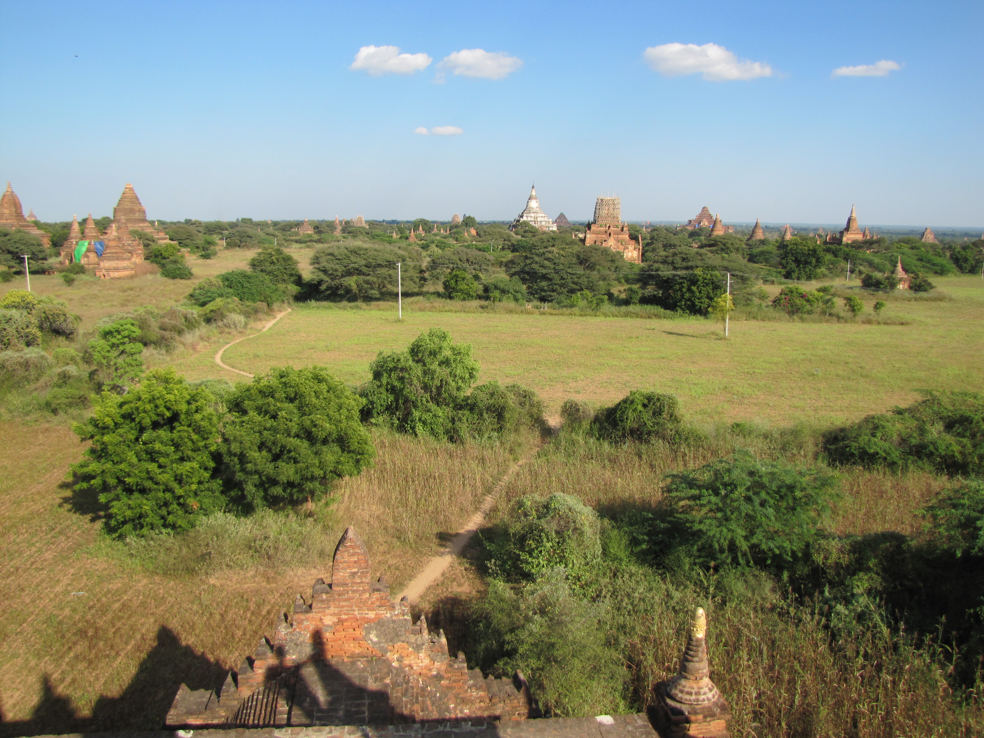 The temple he brought us to was deserted. Even with gobs of tourists swarming around Bagan, there were plenty of remote temples to go around so anyone could feel like Indiana Jane. We dismounted and followed as Aungkolatt casually climbed up the crumbling bricks. UNESCO would cringe to know what easy access everyone has to these structures, able to be climbed upon at a whim. For our purposes, we were thankful for the easy access and amazing views, though I am concerned that my behavior is part of the degradation of this most magical place.