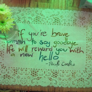 …life will reward you with a new hello.” ~ Paolo Coelho I first saw this quote handwritten on a place mat in Siem Reap, Cambodia. This place mat, colorful and inviting, lured me to a table in the second-floor reading nook of Sister Srey Cafe. Outside an adjacent window, the mid-morning sun was reaching its bright golden fingers through … More “If you are brave enough to say good-bye…